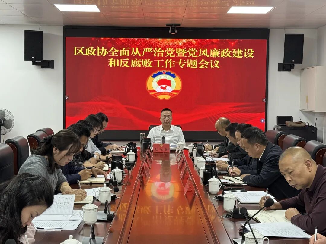 会议传达学习习近平总书记关于全面从严治党、党风廉政建设和反腐败工作的重要论述,总结区政协2025年全面从严治党、党风廉政建设和反腐败工作情况,并部署下一步工作。